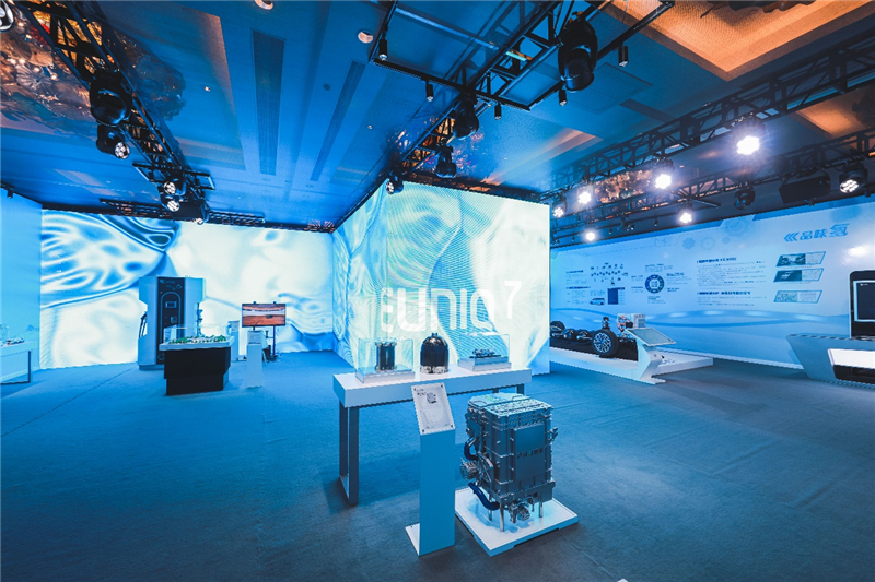 A hydrogen energy-themed exhibition is on display at the SAIC Hydrogen Strategy Conference in Shanghai on Sept 13.